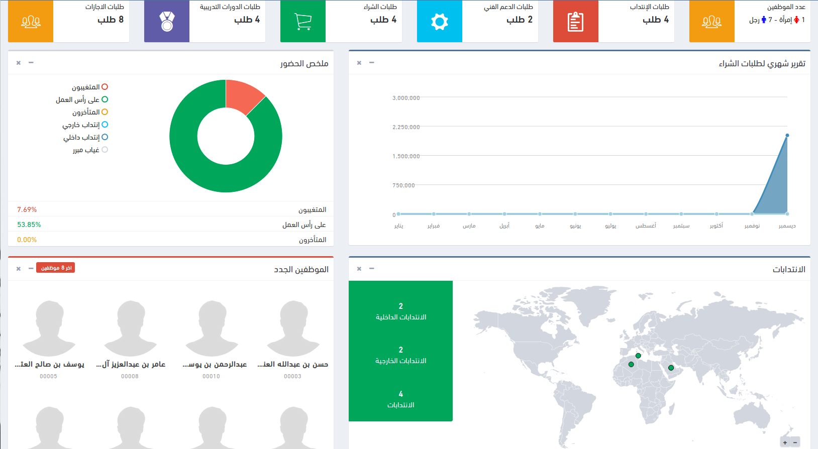 في لوحات المؤشرات يتم عرض بيانات الإدارة للمدير المباشر