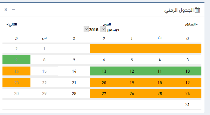تحديد أيام الإجازة والانتدابات والدورات التدريبية في الجدول الزمني الظاهر للموظف في البوابة الداخلية بحيث: