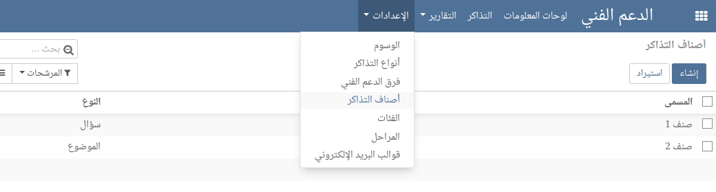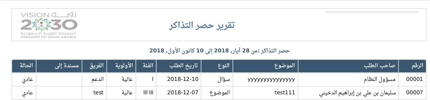 إضافة تقرير حصر تذاكر الدعم الفني حسب الفترة، الفريق و نوع التذكرة