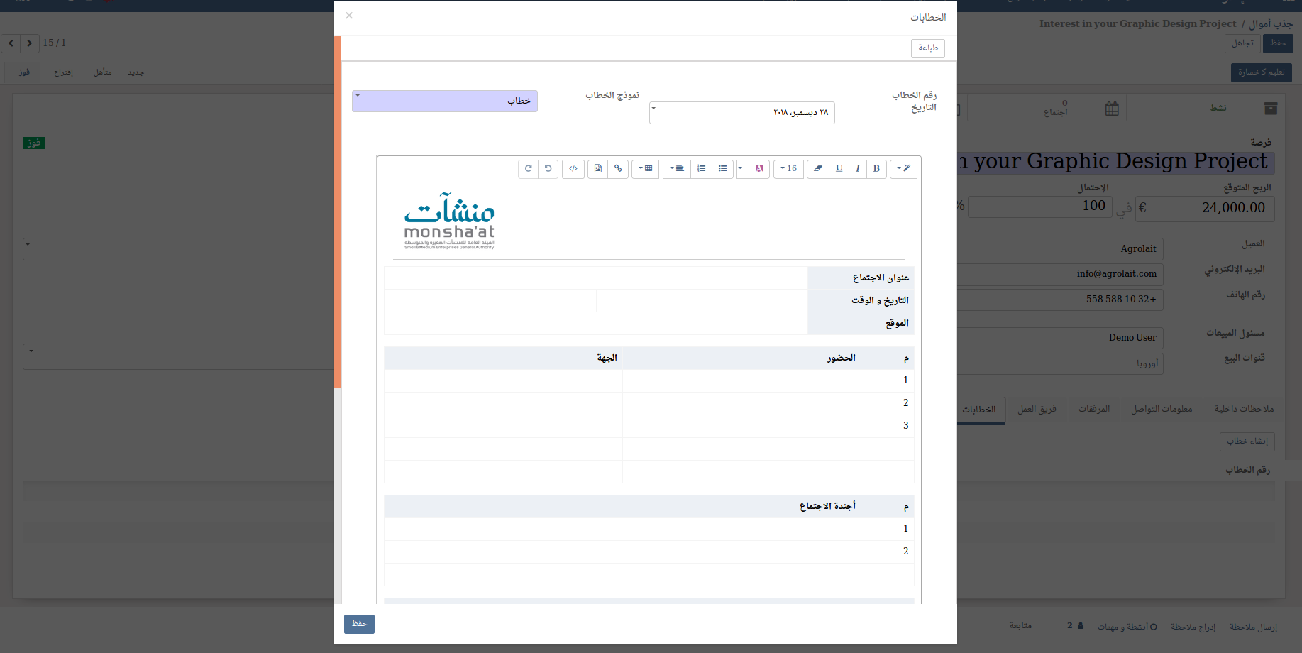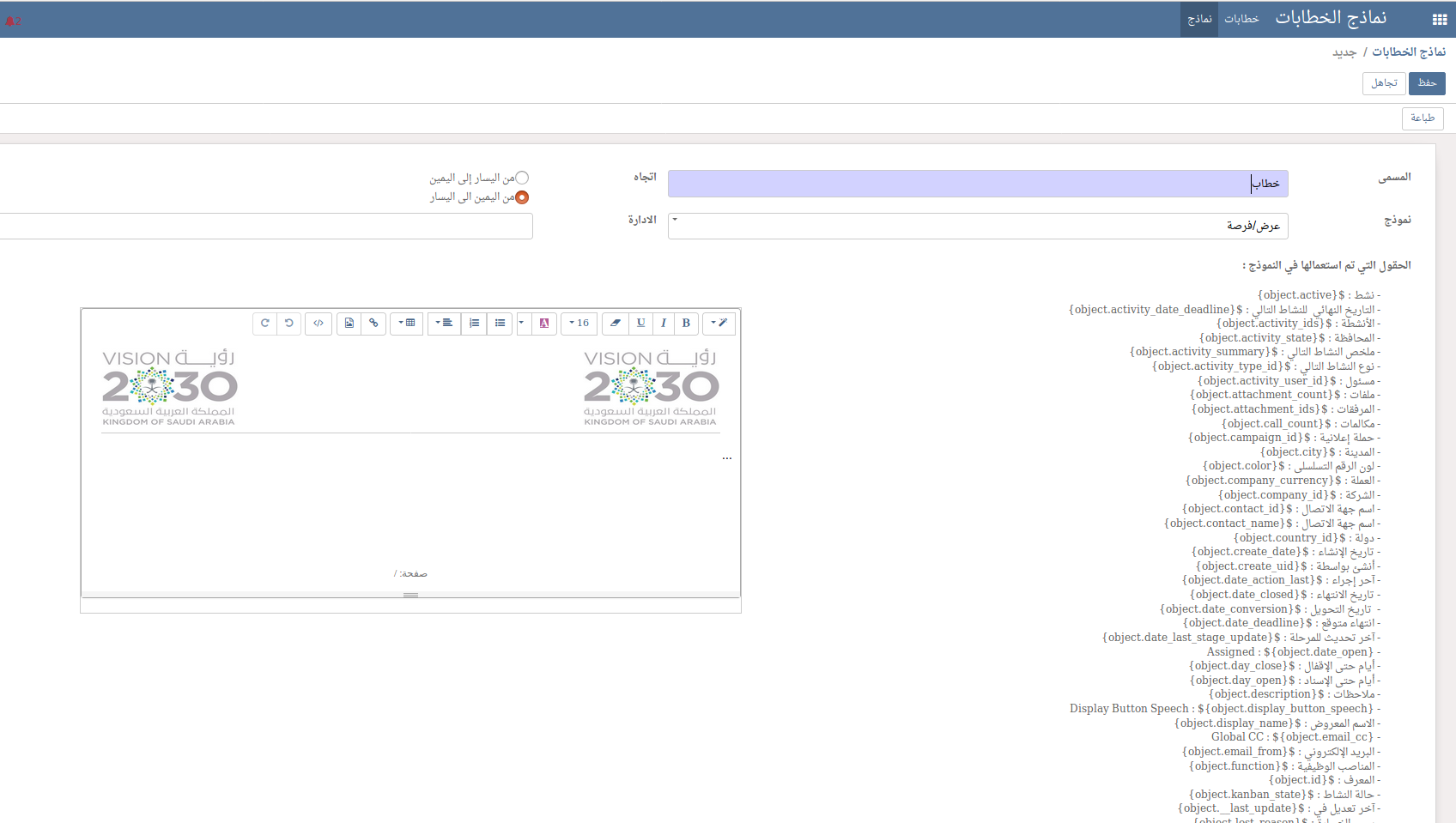 إضافة نماذج جاهزة يتم تعبئتها لإستعمالها.