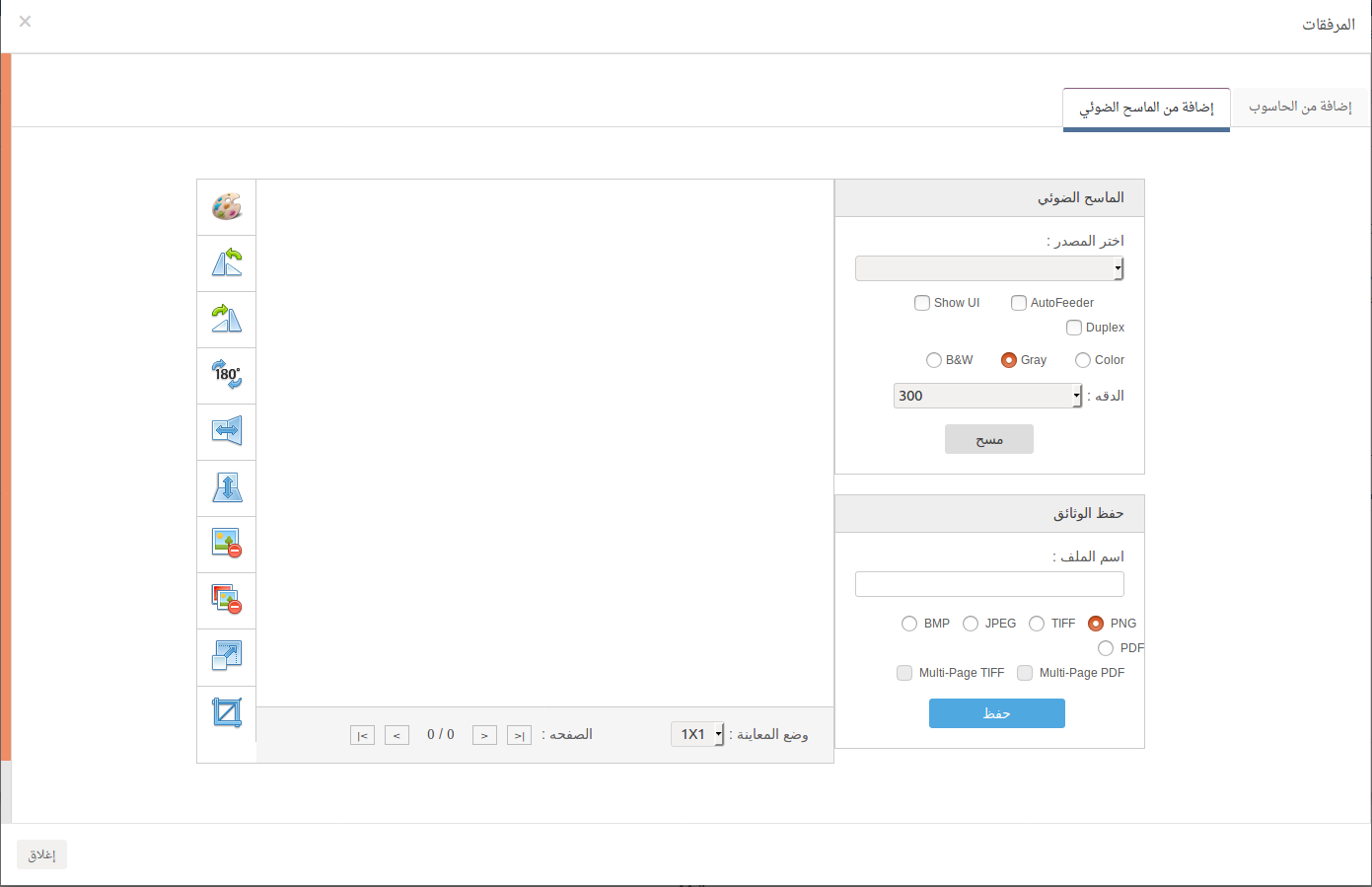 اضافة خاصية السكانر عند ارفاق وثيقة في نظام الاتصالات الادارية.