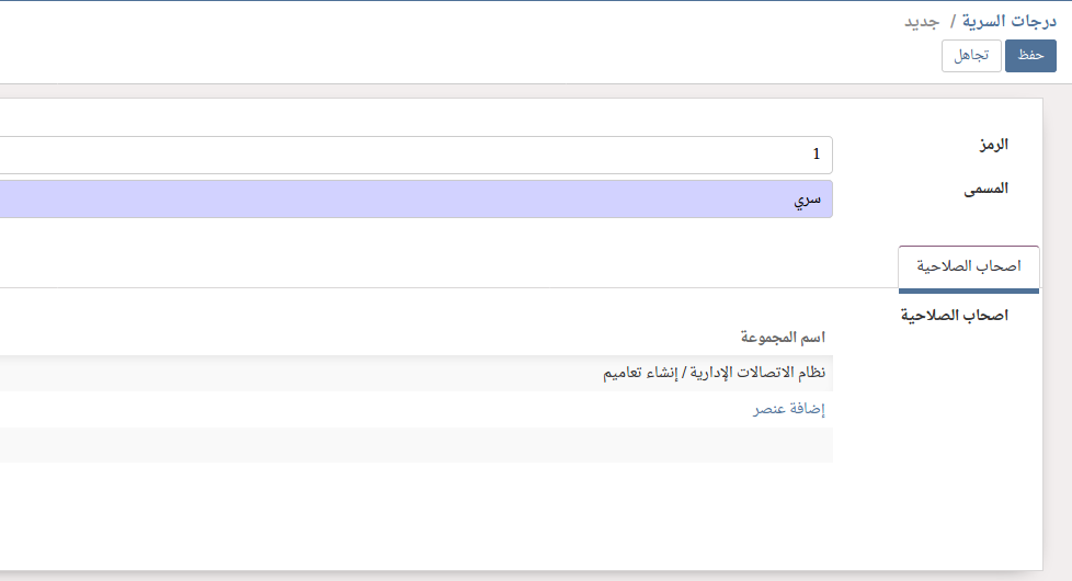 عند الضغط على زر يتم فتح شاشة تحتوي بيانات الموظف مع ادخال البيانات التالية :