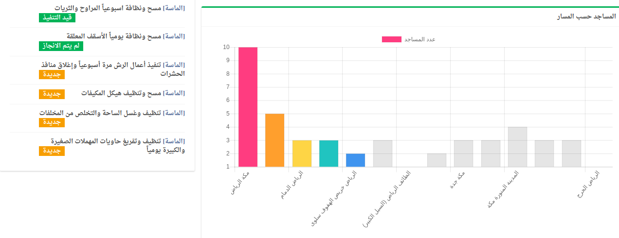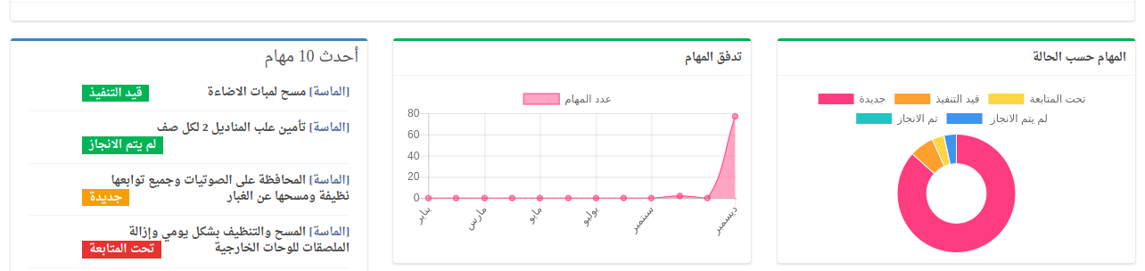 تهدف لوحة المؤشرات لعرض إحصائيات نظام الصيانة و تحتوي على المعلومات والمعطيات على شكل رسوم بيانية و نسب مئوية.