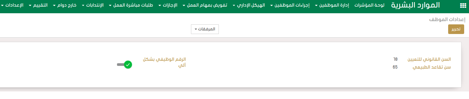 يتم إضافة الرقم الوظيفي للموظف بشكل تسلسلي حسب أخر موظف.
