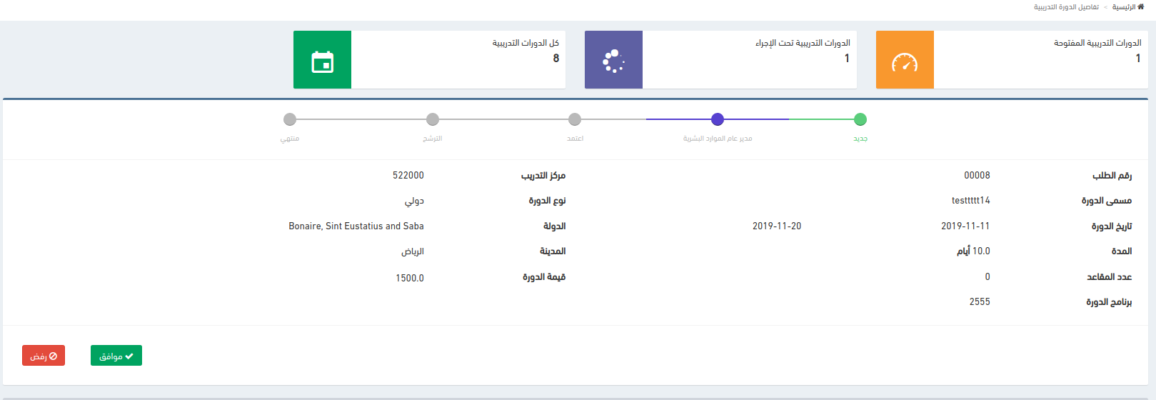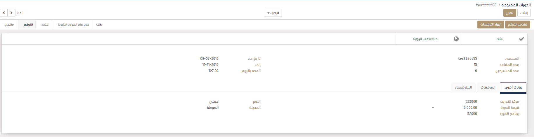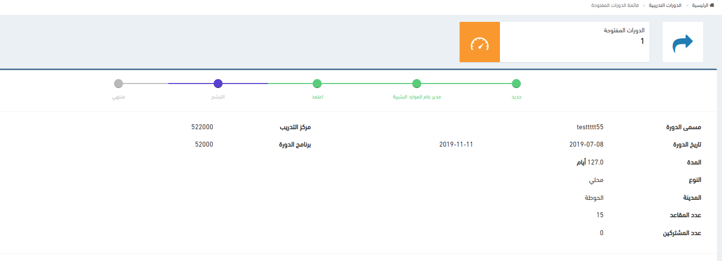 استبدال المحافظ بمدير عام الموارد البشرية عند إنشاء دورة مفتوحة