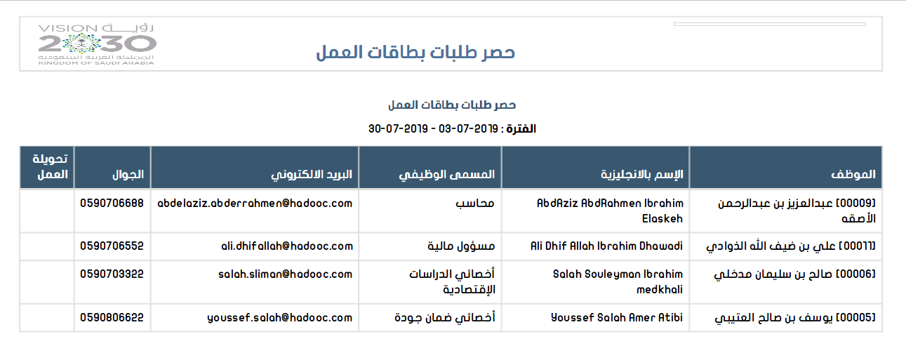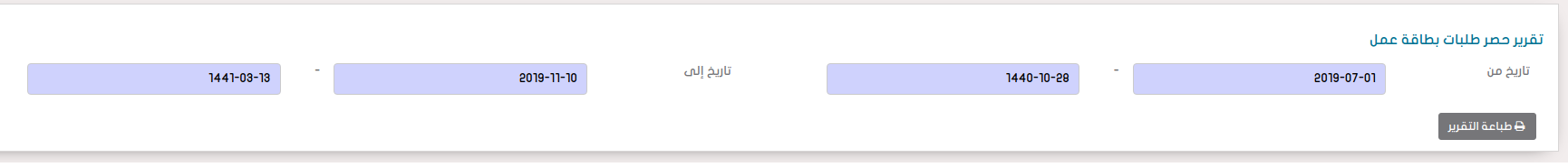 إضافة تقرير حصر طلبات بطاقة عمل