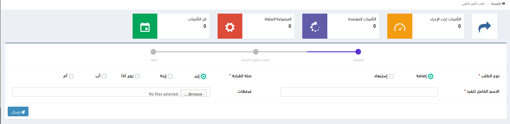 تكون آلية طلب تأمين طبي حسب الإجراء التالي: