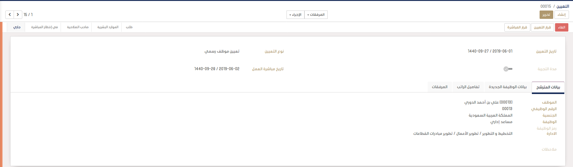 تقوم عمليات الموارد البشرية برفض أوقبول من النظام.