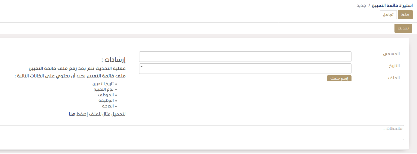 يتم استيراد قائمة التعيين من طرف مسؤول طلبات التعيين.