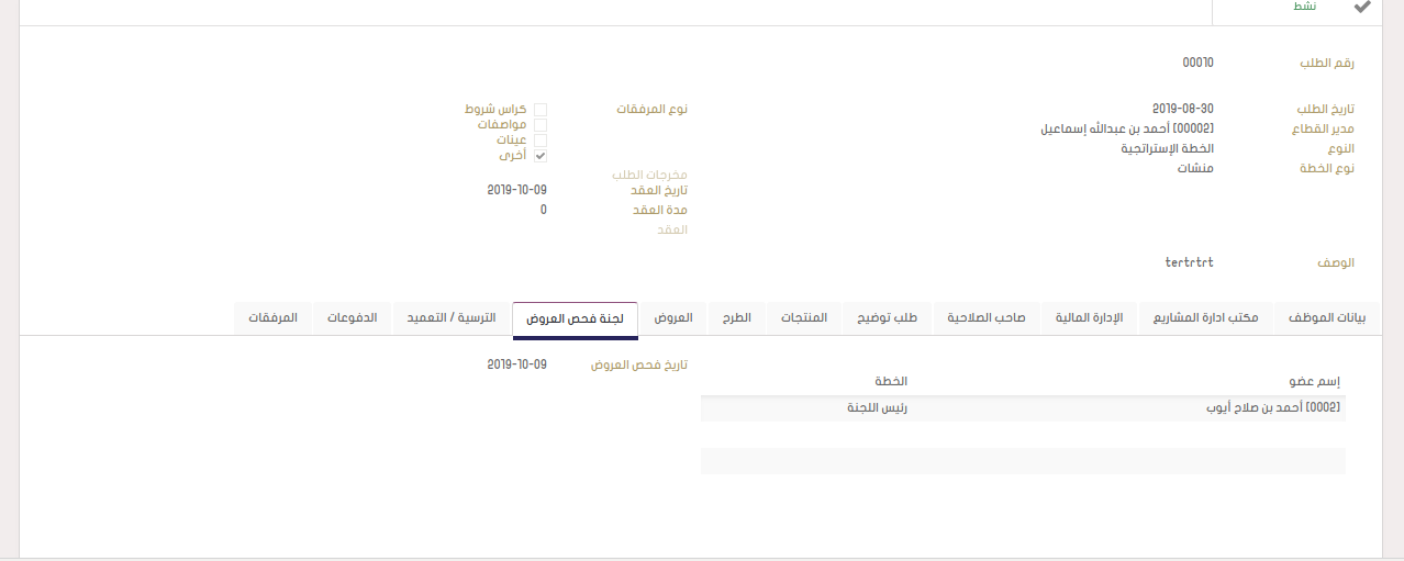 ثم يقوم موظف الشراء بإستلام الطلب ويقوم بإختيار المنتجات التي سيتم شرائها بناء على ما ورد في كراس الشروط .