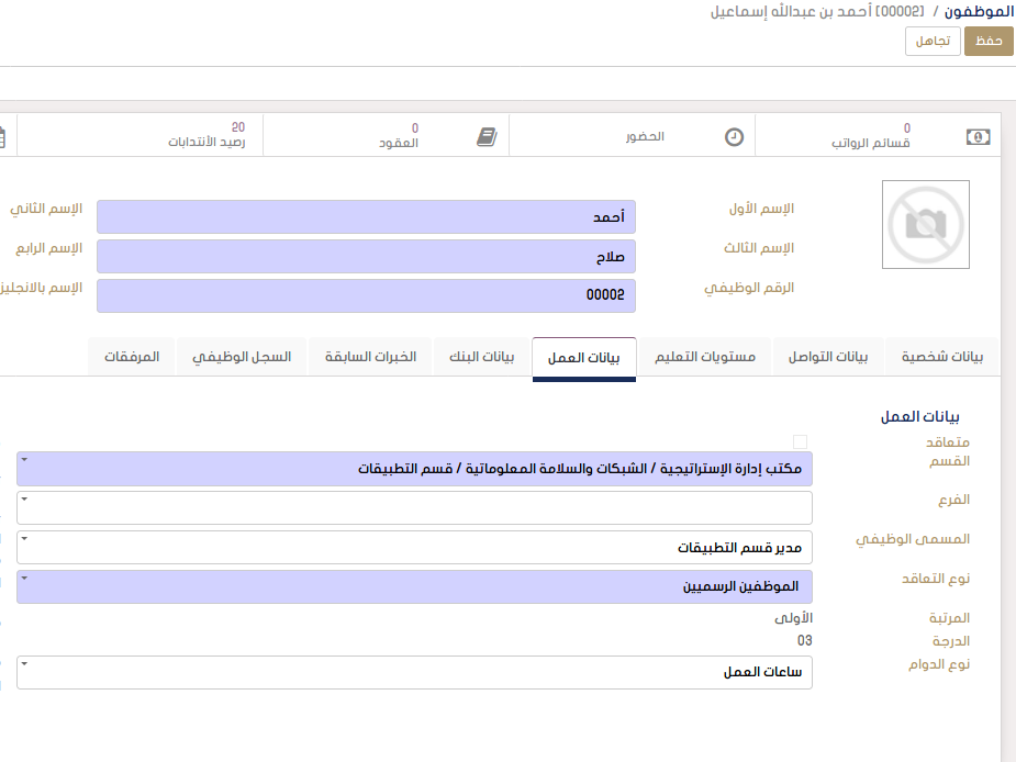 إضافة المسمى الوظيفي بالانجليزية في تقرير بطاقات العمل ليصبح التقرير كالاتي: