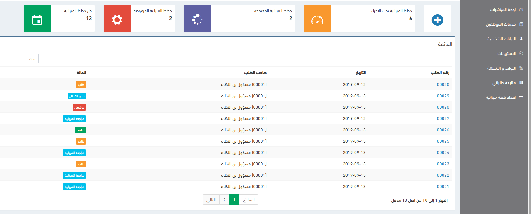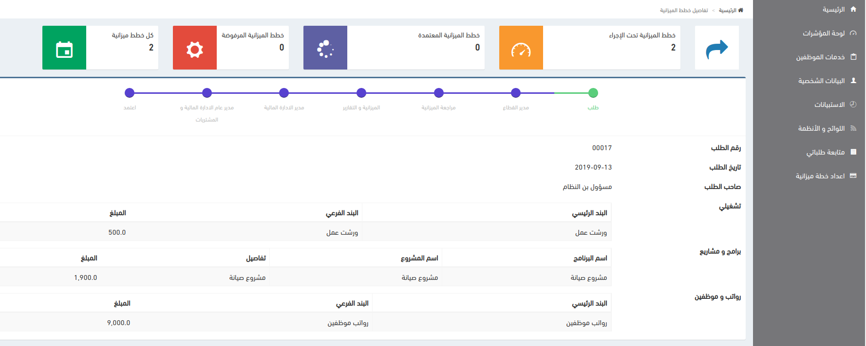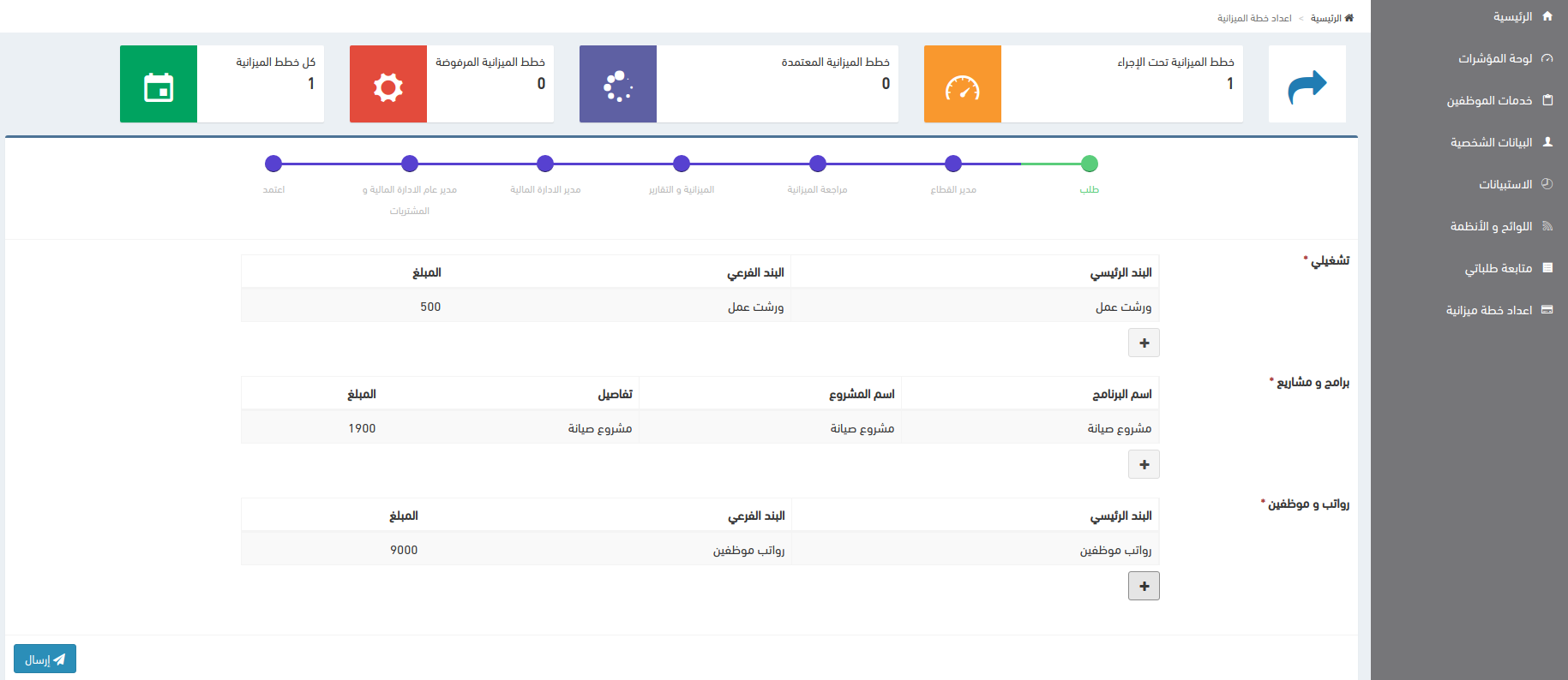 من خلال البوابة يمكن إعداد خطة ميزانية و ذلك بإنشاء طلب ميزانية يحتوي على تاريخ الطلب و