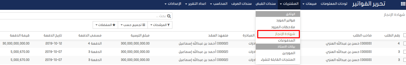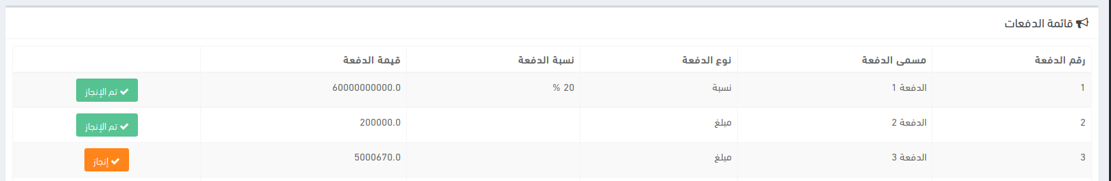 بعد إنشاء الدفعات من قبل موظف المشتريات من نظام المشتريات، يتم عرض هذه الدفعات مع طلب الشراء عند صاحبالطلب من