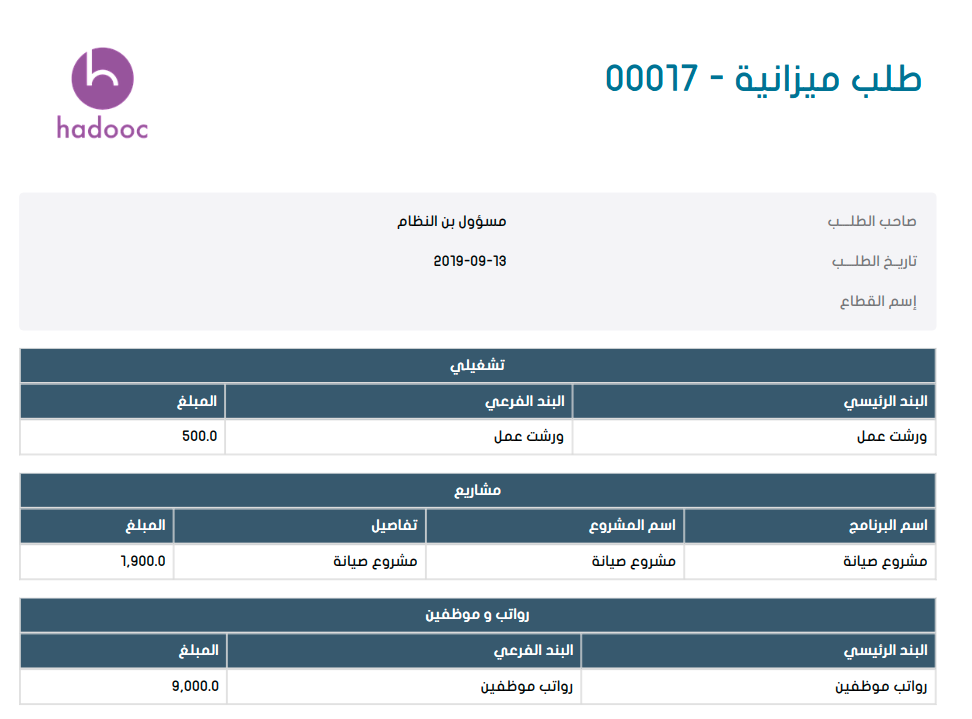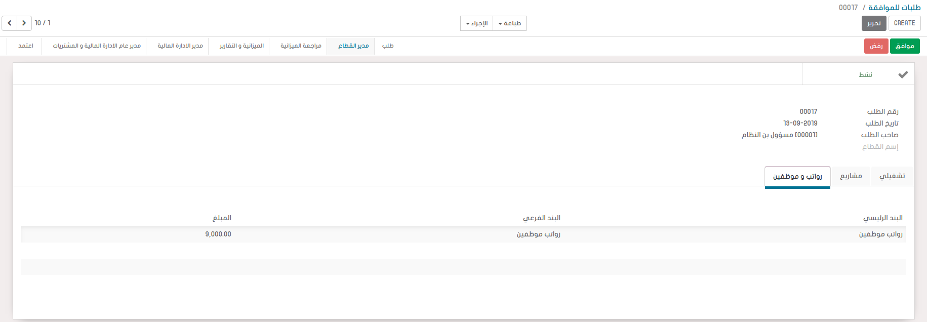 عند مرحلة الاعتماد يمكن طباعة طلب الميزانية