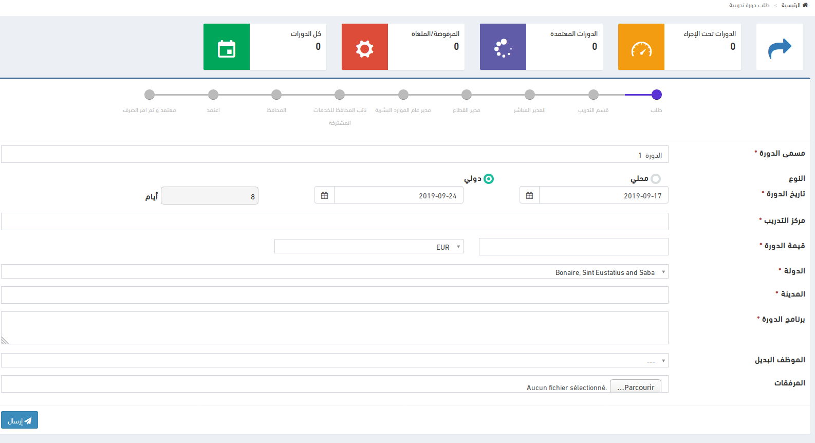 إضافة زر إلغاء طلب للترشح لدورة تدريبية مفتوحة و لللترشيحات من النظام . و يظهر هذا الزر في كل الحالات فقط لقسم التدريب و مدير عام الموارد البشرية. عند إلغاء طلب يقوم نظام بأشعار صاحب طلب.