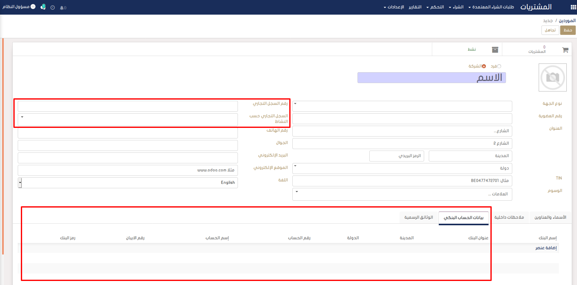 تمت إضافة الحقول التالية في شاشة الموردين :