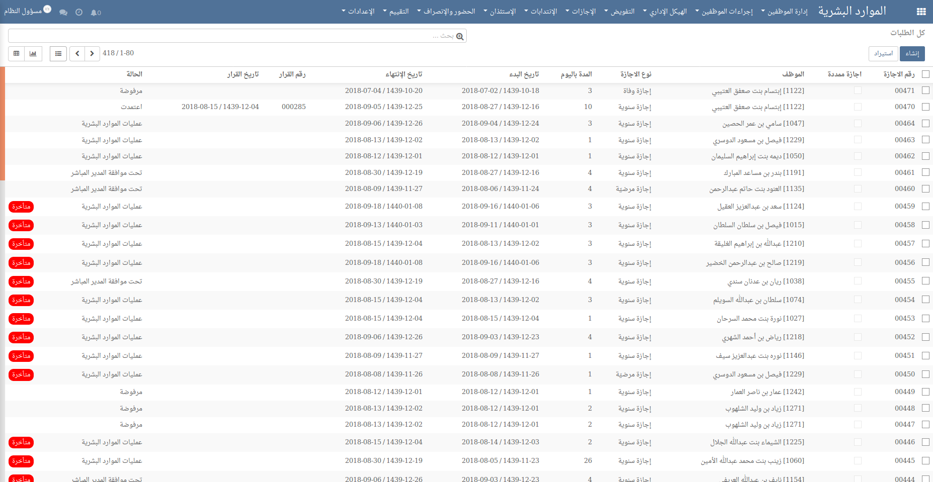 قام النظام بإظافة وسم متأخرة لكل الإجازات المتأخرة حسب مؤشرات الأداء الأساسية لـإتفاقية مستوى الخدمة.