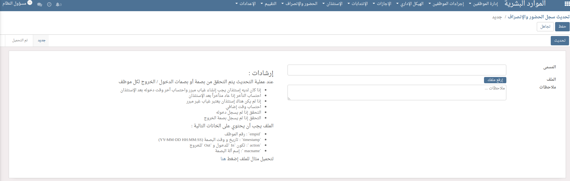 تغيير طلبات الاجازات إلى كل الطلبات نقل قرار المباشر إلى منيو التقارير حذف كل من طلبات تمديد رصيد الاجازات وطلبات الافادة عن حالة الموظف
