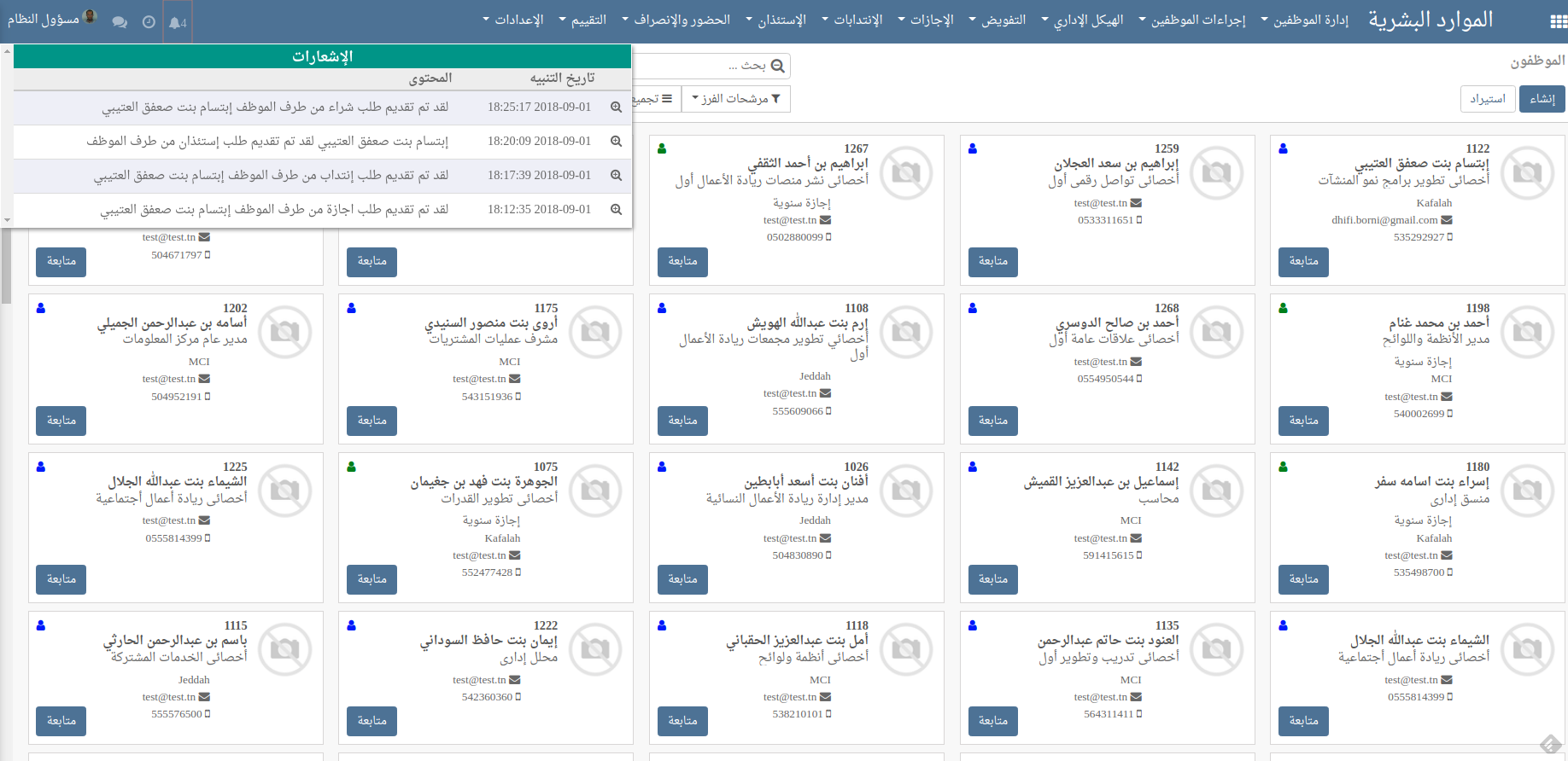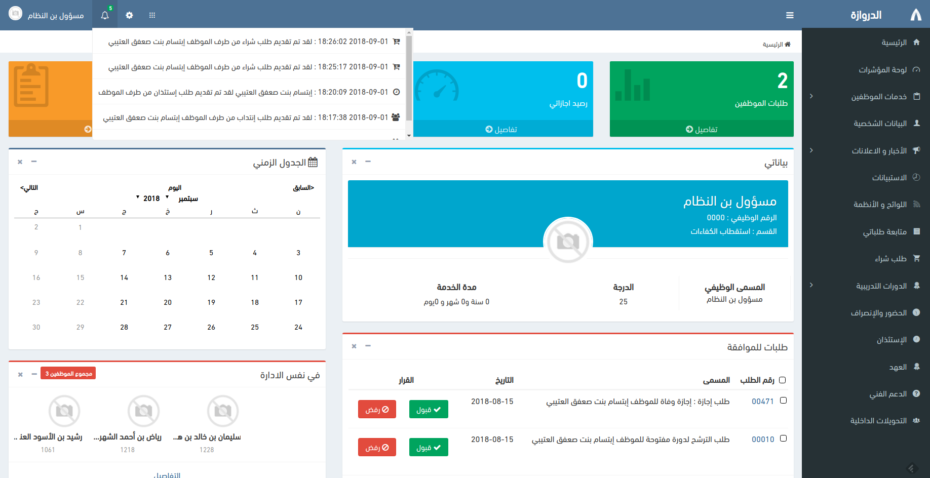 تم إصلاح مشكل إظهار الاشعارات في البوابة و في النظام ، كل طلب أو إشعار موافقة يظهر للموظف المعني.