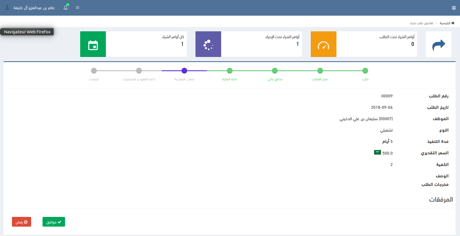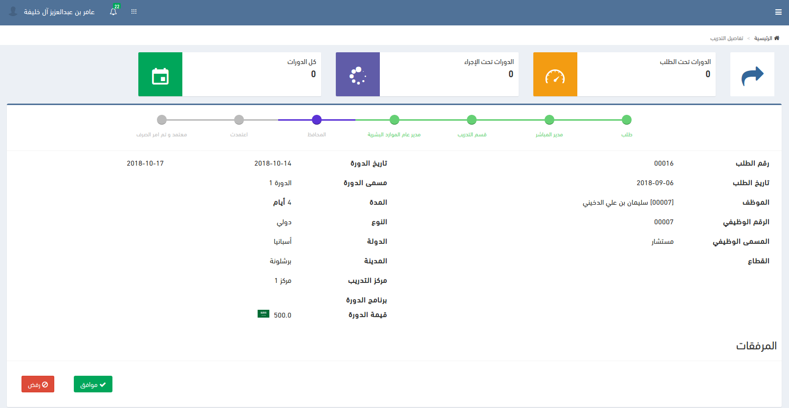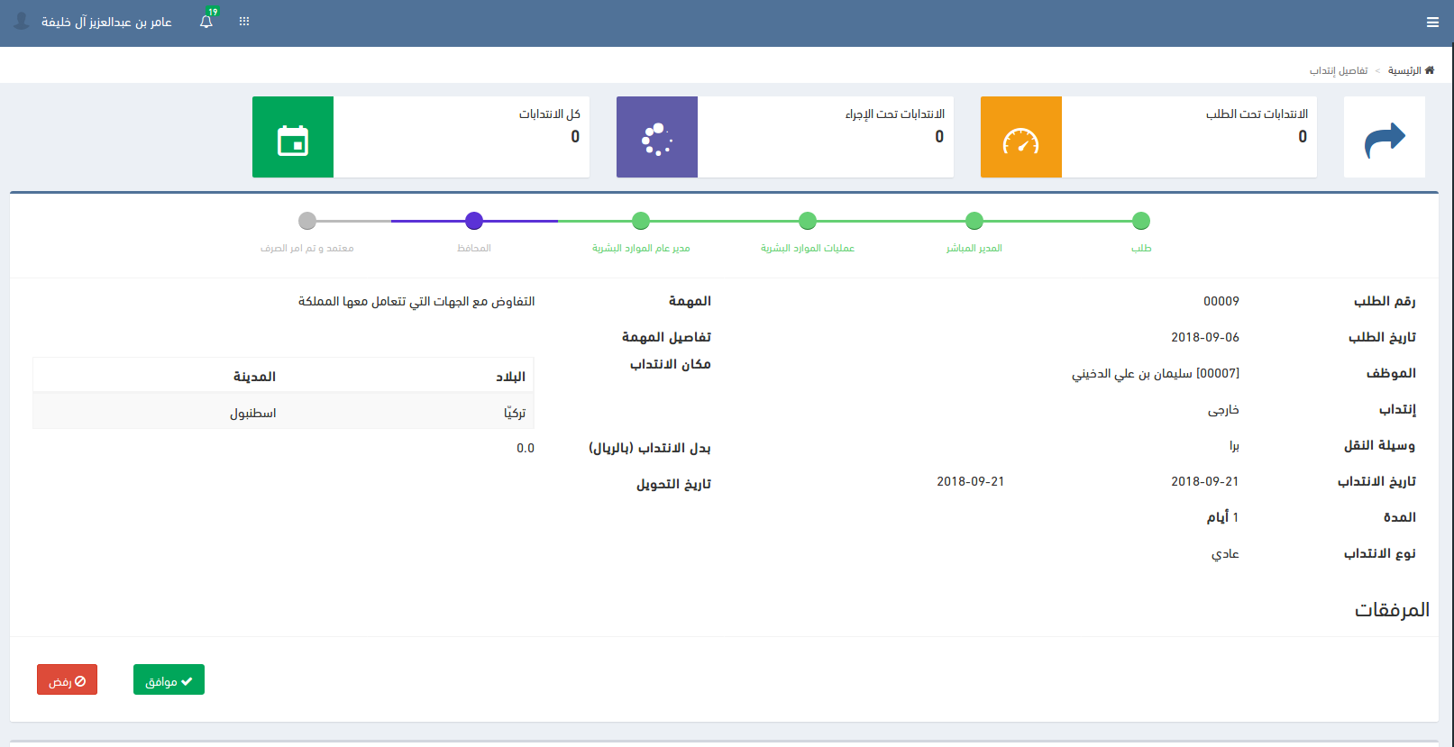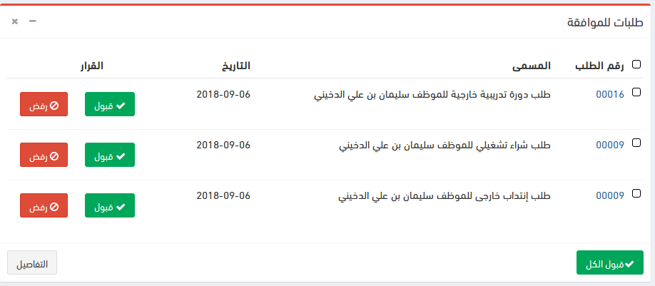 يمكن للمحافظ الموافقة على طلبات الموظفين من البوابة من خلال الصفحة الرئيسية طلبات للموافقة