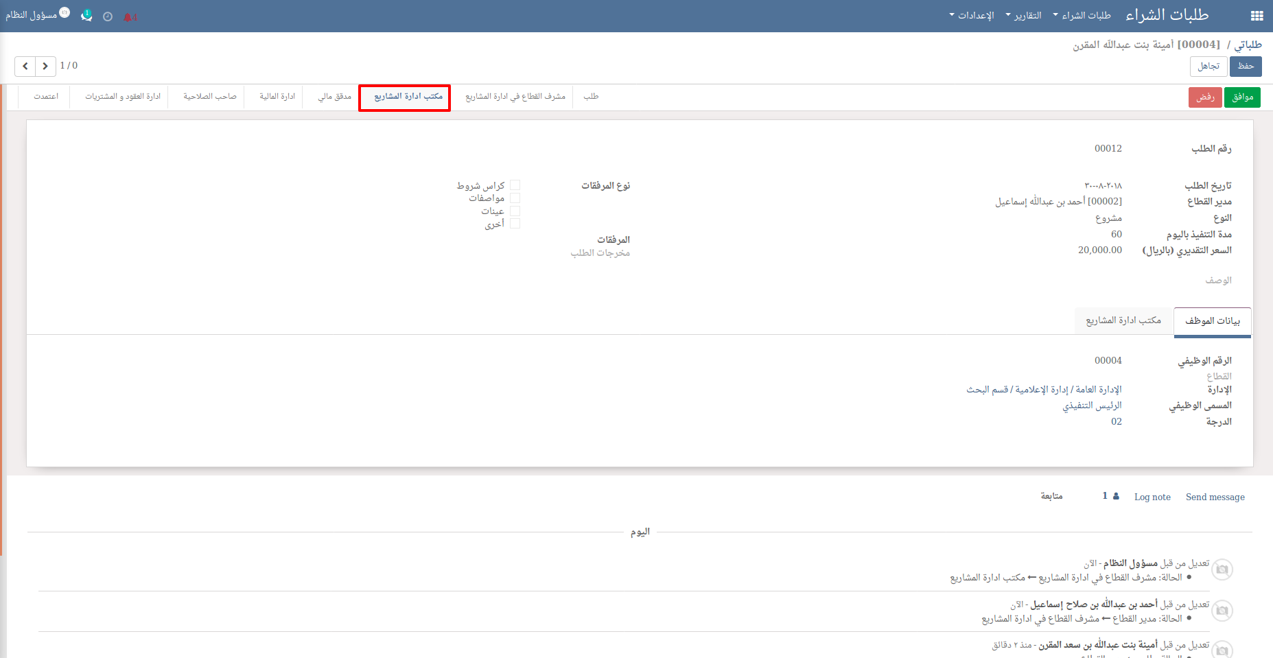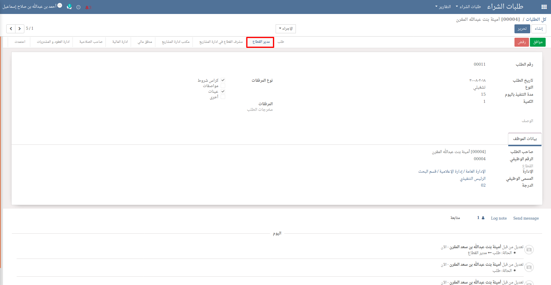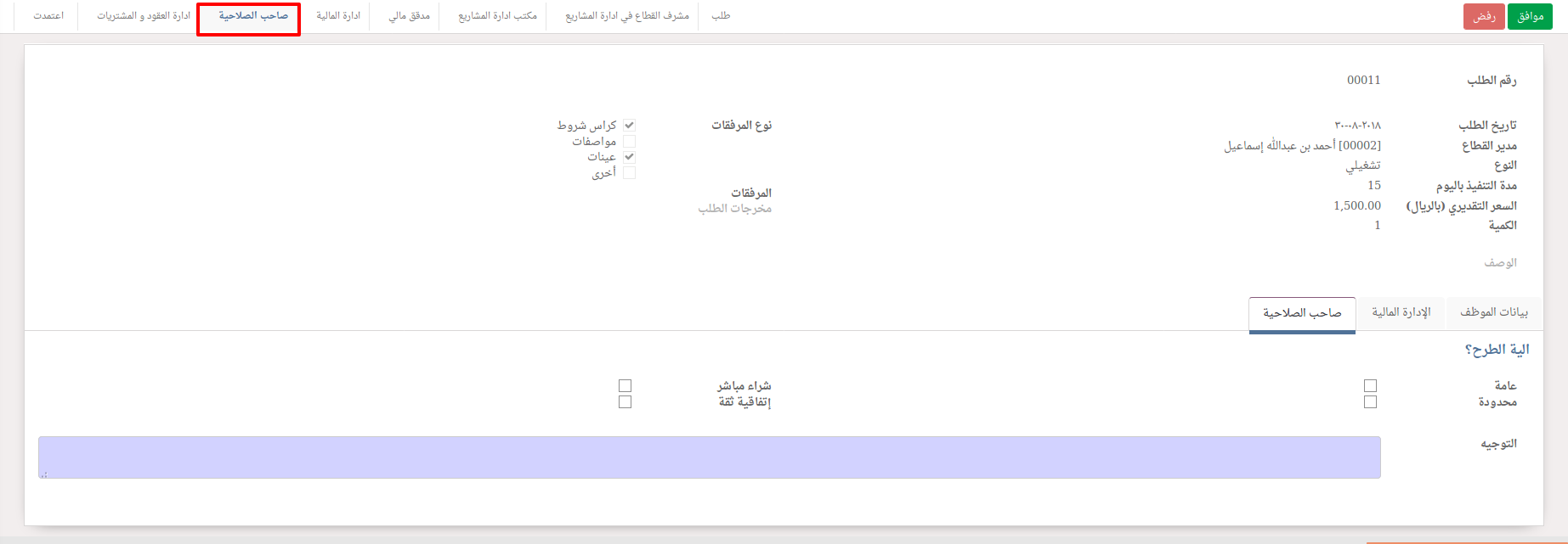 يتغير صاحب الصلاحية في طلبات الشراء حسب مبلغ الشراء إلى حالتين :