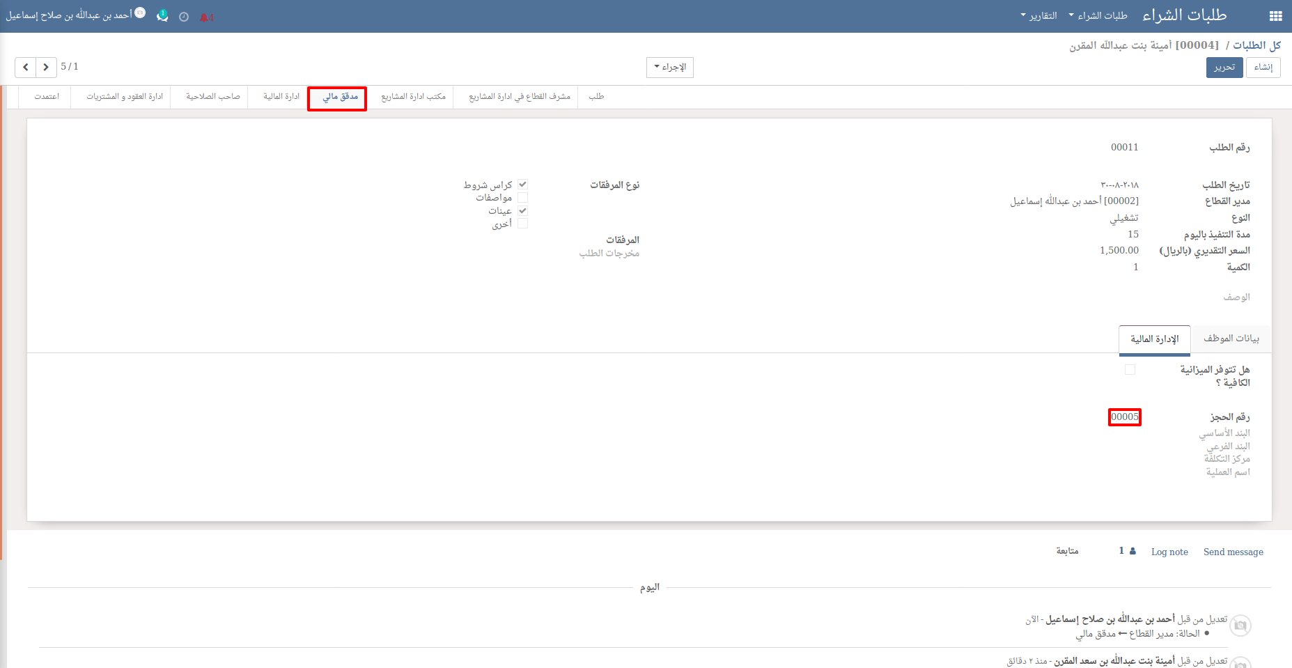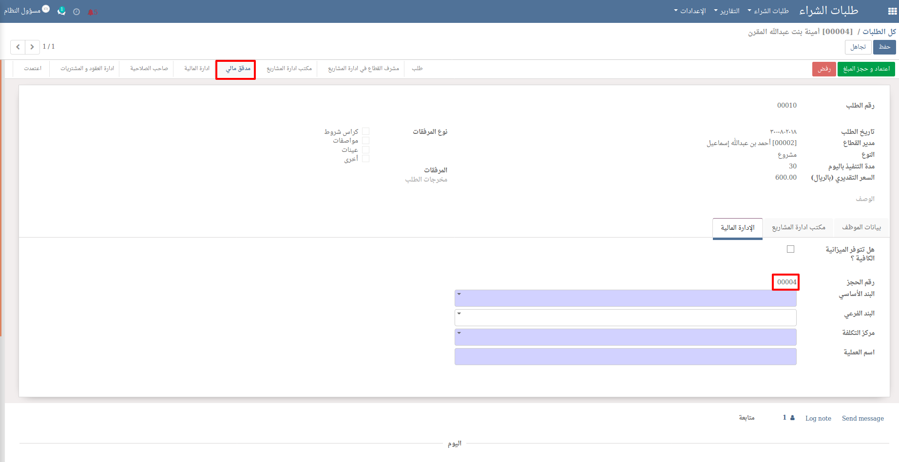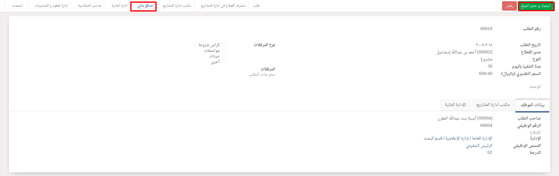 تجميع خطوة اعتماد المبلغ و خطوة حجز المبلغ في خطوة وحدة وهي المدقق المالي بحيث يقوم المدقق المالي بادخال البيانات الخاصة به و اعتماد و حجز المبلغ من نفس الخطوة.